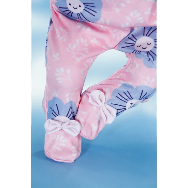 Cette combinaison rose avec un délicat motif floral apporte une brise fraîche dans la garde-robe de la poupée. Les fleurs bleues créent un joli contraste coloré et donnent à la poupée un aspect particulièrement agréable. Que ce soit pour dormir, se blottir ou se promener : la combinaison s’adapte parfaitement à toutes les poupées de 43 cm de haut et les accompagne tout au long de la journée.